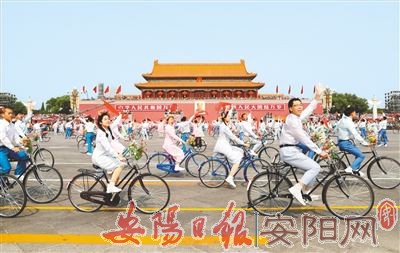 在10月1日上午进行的国庆70周年群众游行中,上百名少男少女骑着自行车从广场通过。这个主题为“青春万岁”的场景唤醒了很多人对20世纪80年代的时代记忆……这是本次群众游行中的第一个情境式行进。
