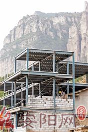10月17日,在林州市石板岩镇上坪村上坪·云述民宿项目现场,工人正忙着砌墙。该项目是由上坪村农民合作社和郑州合志同创实业有限公司联合投资1000万元打造的文旅扶贫项目。项目运营后,预计村集体年增收8万元,群众户均年增收500元以上。(本报记者 江盟 摄)