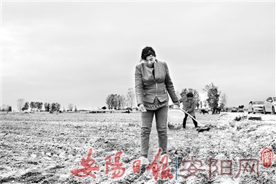 图为10月22日,王庄镇前王庄村村民王五妞正在田间地头补种小麦。(王 圣 摄)
