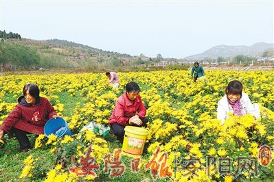 霜降前后,“菊花之乡”林州市茶店镇的金丝皇菊花进入采摘期。11月3日,记者在翟二井村一带看到,数十公顷金丝皇菊花长势喜人,构成一道靓丽的风景。村民在田地里采摘菊花,不断有游客到地里观赏菊花,拍照留影。