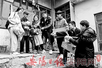 近日,安阳职业技术学院艺术系2019级部分学生在河北省武安市井裕村写生期间,发现3户家庭十分困难,在班长崔泽楠的倡议下,大家自发进行捐助。乡领导和村“两委”高度重视,专门组织捐赠仪式,并引领老师和学生到特困户家里进行捐助。图为11月9日的捐助现场。(本报记者 任玉霞 摄)