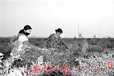 ▶王庄镇郎柳集村的13.33公顷甜食玉米与辣椒套种基地,前期甜食玉米每公顷受益15000元左右,眼下小辣椒已成熟,火红的辣椒惹人喜爱,引来附近众多群众采摘,预计每公顷收益在37500元以上。图为11月12日,该村村民正在采摘辣椒。(王 圣 摄)