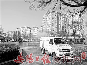 在疫情防控阻击战中,林州市城市管理局出动“雾炮车”,定时对该市市区重要路段、重要场所进行消毒。