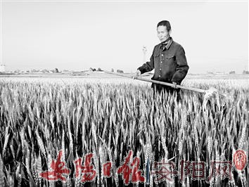 19时许,当记者就要走出高尚福家的麦地时,迎面走来一位青年男子,拎着一个大袋子。马合喜说,这是高尚福的儿子给高尚福送晚饭来了。回头看看高尚福,他正拎着一截卷好的水管往地势较高的田垄上走去,身后的麦浪浮动。在劲风吹动下,麦穗清香四溢。