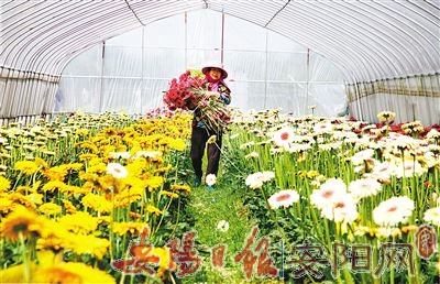5月5日,江西省宜春市靖安县香田乡红岗村农民在采收鲜花。