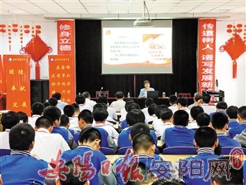 6月11日,市委党校常务副校长王素梅到市昼锦中学,给师生们上了一堂生动的思想政治课。王素梅围绕“实现伟大梦想、书写人生华章”这一主题,阐述了中国历史的变迁、中国共产党人的理想信念以及一代又一代革命先行者、英雄楷模人物为实现中国梦而付出的艰辛努力,希望学生坚定理想信念,练就过硬本领,做合格的社会主义事业建设者和接班人。(张 盟 摄)