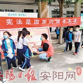 近日,文峰区司法局中华路司法所联合中华路街道办事处、鑫泰社区在银鹭小学开展了普法进校园活动。