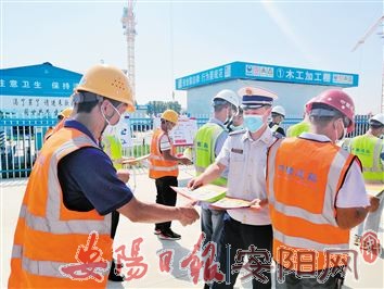 6月16日,安阳县消防救援大队队员走进辖区建筑工地,宣传讲解防火灭火逃生知识。