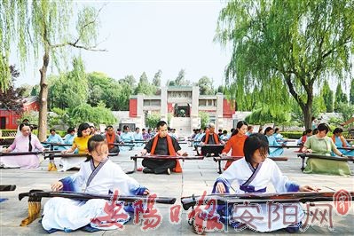 6月21日,为庆祝中国共产党成立99周年,宣传汤阴文化,推动汤阴旅游发展,汤阴县文联组织县古琴协会在羑里城举办了大型古装古琴秀,通过这种方式来涵养心境,陶冶情操,礼赞伟大的祖国,为建设新时代幸福汤阴美丽家园贡献文艺力量。(刘跃民 摄)