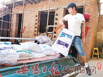 6月22日,记者在翻身街村田鹏家中见到了这个身残志坚的小伙子。正值下午,烈日炎炎,田鹏在院子中单臂拎起一袋袋重达20公斤的食盐提上三轮车,不一会儿身上的T恤就湿透了。“这是给养殖户配送的盐。每天都是这样,习惯了就不觉得沉了。”田鹏擦了一把汗,乐呵呵地说。