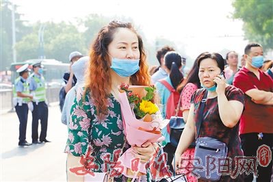 当天7时许,在市实验中学考点外,记者看到,虽然离入场还有一定时间,但是考点外已经聚集了不少学生和家长。学生有的坐在电动自行车上,手中拿着复习资料抓紧时间复习,有的三三两两聊着天放松心情。家长则为了讨个好彩头各出奇招,有的身着旗袍,寓意旗开得胜,有的手持向日葵,寓意一举夺“葵”。高三的老师也来到现场,和考生击掌加油,告诉学生要沉着冷静。