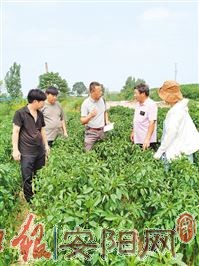 图为7月28日,专家团队在东报德村朝天椒高效栽培基地查看朝天椒生长情况,为群众讲解近期的管理技术重点。(任领兵 摄)