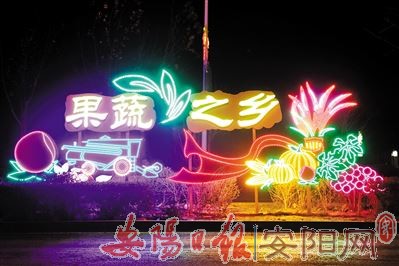 12月29日,夜幕降临,内黄县城的路灯照亮了群众回家的路。路上,不同颜色、不同造型的灯光微景观点亮了群众的幸福生活。