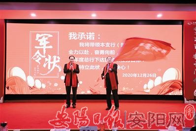本报讯 (记者 王慧敏 通讯员 孙会利)12月26日上午,安阳商都农商银行在该行16楼会议室召开了2021年首季“开门红”誓师大会,总行领导班子成员、全行中层干部以及部分员工代表共计160余人参加了会议。