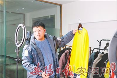 1月18日10时许,在内黄县电商产业园直播基地,东庄镇董村返乡创业大学生董腾飞正在直播间里直播卖货。“家人们,我身上穿的这件棉服很厚实,做工精良,衣服的面料非常舒适。今天我们来一个秒杀价,有3种颜色,蓝色、灰色和黑色,体重从45公斤到95公斤都有合适的尺码,喜欢的家人们call起来……”董腾飞面对着手机说。
