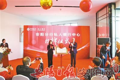 本报讯 (记者 陈振江 通讯员 秦一帆) 1月5日,中行安阳分行私人银行中心揭牌仪式在分行营业部举行。这个精心打造和规划的私人银行中心是中行河南省分行设立的首家私人银行中心,这标志着中行为安阳高净值客户提供综合金融服务的能力迈上了一个新台阶,同时对银行提供综合性金融服务的能力提出了更高标准。中行河南省分行私人银行部总经理王桦,中行安阳分行党委书记、行长刘晓阳,副行长孙超及相关部门负责人、私行客户代表受邀出席此次活动,共同见证这一重要时刻。
