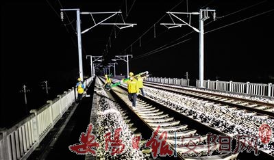 连日来,中国铁路南宁局集团有限公司南宁供电段的工人们利用子夜“天窗”时间,全面检修南广高铁、普铁接触网部件,排除各种隐患,为2021年的春运保驾护航。 (新华社记者 张爱林 摄)