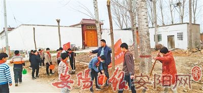 3月11日,安阳县韩陵镇李家山小学少先队员在老师与家长的陪同下,开展春季植树造林活动。在植树现场,家长挖坑,少先队员扶苗、培土、浇水,度过了有意义的一天。(华飞飞 摄)
