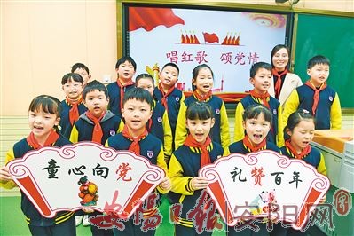 3月18日,合肥市建平实验小学南艳分校学生在唱红歌。