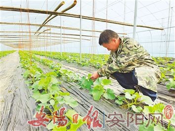 3月16日,在八里营镇万亩洋香瓜种植基地,记者看到,一排排大棚整齐划一。走进大棚,扑面而来的暖湿空气、一排排翠绿欲滴的瓜苗顿时让人感到春意盎然。刘苑村瓜农刘优军正在大棚里打理瓜苗。今年,他抓住有利时机,及早育苗移栽,为洋香瓜提前上市做好了准备。