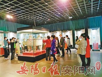 图为4月10日,殷墟博物馆的精美文物吸引了来自各地的游客,大家纷纷被古都安阳的悠久历史文化所折服。 (本报记者 高学艳 摄)