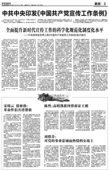中共中央印发《中国共产党宣传工作条例》