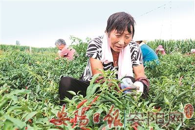 8月29日,在滑县万古镇杜庄村焕永种植农民专业合作社,红艳艳的辣椒挂满枝头,微风吹过,散发出阵阵椒香。农户加紧采收,企业加紧收购,现场一派繁忙景象。