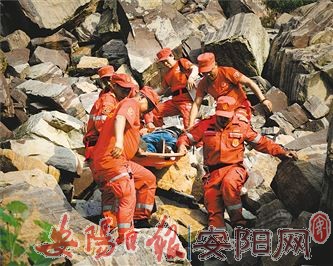 救援的大队人马赶到后,杨永峰等人又为救援人员指路,并一起抬伤员。
