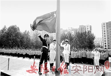 本报讯 (记者 任玉霞)“我和我的祖国,一刻也不能分割,无论我走到哪里,都留下一首赞歌。我歌唱每一座高山,我歌唱每一条河,袅袅炊烟,小小村落……”9月26日10时许,市实验中学美丽的校园里到处回荡着歌唱祖国的歌声,鲜艳的五星红旗迎风飘扬,让人爱国之情油然而生,心情激荡。