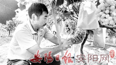 滑县果树园林协会理事长、老庙乡王伍寨村村民郭鹏胜种植了9亩葡萄,30多个品种早晚错峰,最早的7月成熟,最晚的10月成熟,采摘期长达4个月,亩收入1万余元。目前,成熟较晚的“甜蜜蓝宝石”“魏可”等品种密密匝匝挂满架,如玛瑙,似翡翠,晶莹透亮。