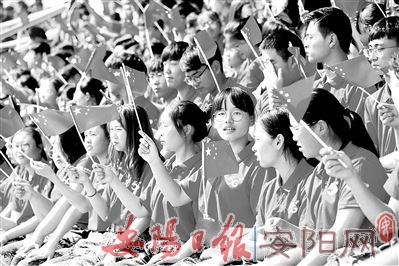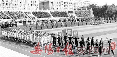 9月24日清晨,安阳工学院的体育场内彩旗飘扬。看台上,身着各色运动服的观众挥动着国旗等待市第十二届运动会开幕。