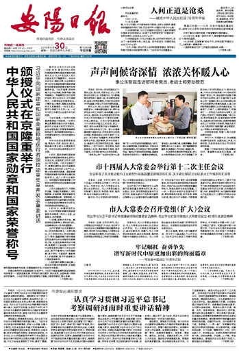 昨天上午,李公乐来到广厦新苑潘细腊家中,与潘细腊促膝交谈,倾听他讲述战斗和工作经历,给他佩戴上由中共中央、国务院、中央军委颁发的庆祝中华人民共和国成立70周年纪念章,并送上慰问金。今年64岁的潘细腊1979年参加对越自卫还击战,荣立一等功,被中央军委授予战斗英雄称号,1996年转业到地方工作。李公乐感谢潘细腊为国家安全、安阳发展作出的突出贡献,希望他结合正在开展的“不忘初心、牢记使命”主题教育,积极发挥模范带头作用,把好精神、好作风传承下去,继续关心和支持安阳的发展。潘细腊表示,一定不忘初心、牢记使命,始终保持军人本色,做到离岗不离党、退休不褪色,为安阳发展作出应有的贡献。