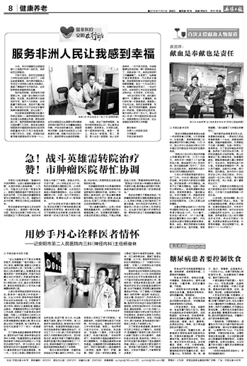 急!战斗英雄需转院治疗 赞!市肿瘤医院帮忙协调