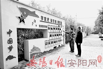 11月8日上午,走进殷都区西郊乡丰安村,记者看到了许多人家门口张贴着“共产党员户”“光荣之家”“十星文明户”等小牌子,村里整洁干净,宣传社会主义核心价值观、孝老爱亲等内容的画面张贴在村内的墙体上。