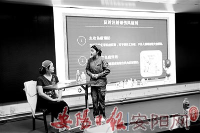 本报讯 为贯彻落实健康中国战略,助力健康安阳建设,激发护理人员的科普宣讲热情,提升护理人员的科普能力,11月7日下午,安阳市第六人民医院举办了护理人员健康科普能力大赛,共有48名护士参加比赛。比赛由相关职能部门主任担任评委,全体护士长和部分护士观看了比赛。