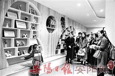 11月18日,北关区“发展园所文化 打造品牌特色”幼儿园足球文化内涵建设现场会在北关区博雅幼儿园举行。北关区教育局工作人员、北关区小学和幼儿园相关负责人共120余人走进博雅幼儿园进行观摩交流。孩子们的足球比赛、啦啦操、足球操赢得大家阵阵掌声。图为小讲解员为与会人员讲解幼儿园足球特色。