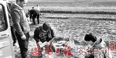 慈周寨镇是河南省无公害蔬菜生产示范基地,有大棚和露地蔬菜1000公顷。为确保蔬菜上市品质,打造优质、绿色、安全品牌,该镇党委、镇政府加强对菜农的种植安全意识的宣传,强化施肥用药技术培训,定期聘请上级部门到田间地头进行抽样检测农药残留,确保质地、口味俱佳,品质较高的无公害品牌蔬菜叫响全国。图为11月19日,县农业局工作人员正在抽取万亩韭菜方的韭菜检测样本。 (王社伟 摄)