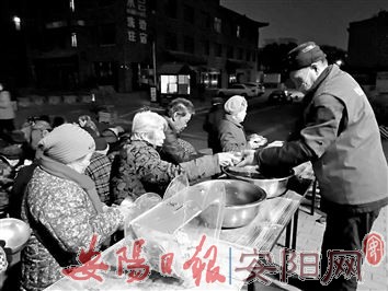 本报讯 (记者 高 咪)文峰汇十二府的爱心粥屋只是爱心粥的一个缩影,每年腊八节当天,全市范围内的爱心奉粥公益活动都会如期举行。如今,我市爱心施粥队伍已发展壮大,有上万名志愿者参与、32家奉粥点同时送粥。参与群体包括,安阳辛大侠爱心家园、安阳厚義公益、安阳殷都区义工联合会、安阳公益免费爱心粥屋等公益组织以及人民网河南频道、新华网河南频道、大河网、安阳网等50多家新闻媒体和商业网站。