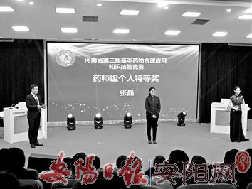 本报讯(记者 郭新星)昨天,记者从市第六人民医院获悉,在11月22日省卫健委、省总工会联合举办的河南省第三届基本药物合理应用知识技能(药师组)竞赛中,安阳市第六人民医院药剂科主管药师张晶表现优异,个人成绩位列第一,获个人特等奖。此外,由张晶和其他医疗机构两位药师组成的代表队从18个代表队中脱颖而出,顺利闯入团体决赛,获得团体二等奖的好成绩。