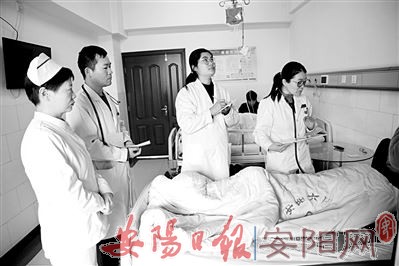 一位患者治疗后总是犯困,张晶查看患者用药后,解释这是服用镇静类药物后的常见反应;一位患者表示自己腹部被按压后局部出现一片黑青的情况,张晶查看患者用药情况后,判断是服用阿司匹林后容易出现皮肤黏膜下出血,嘱咐患者继续观察,并安慰患者不用担心,在平时生活运动中减少可能引起创伤的行为……在长达一个多小时的药学查房过程中,张晶一直在病床前跟患者和家属交流,解答其疑问,连喝口水的时间都没有。