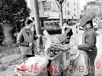 12月1日,豆腐营街道盘庚西社区工作人员联合自由路小学小志愿者在文博园小区开展了楼院清洁活动,助力我市文明城市创建。图为活动现场。
