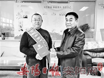 回忆献血之路,田晓峰说:“我和无偿献血有着不解之缘,2003年我还在电池厂上班,单位推荐我去参加无偿献血,后来因为工作繁忙没能参加,感觉特别遗憾。后来上班路上我看到北关区市政广场的献血点,就毫不犹豫地去了。虽然那是我第一次献血,但一点都没有感觉到紧张,内心更多的是激动之情。”