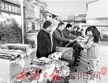 12月2日下午,作家陈志亮冬日送温暖捐赠仪式在安阳县永和镇三道街小学举行。捐赠仪式上,陈志亮(左二)用自己近年所得的2000元稿费购置了一批学习用品,捐赠给该校10名品学兼优的贫困生,受到全校师生一致好评。