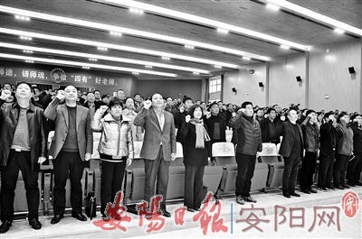 “我宣誓:我志愿做一名光荣的人民教师,忠于人民教育事业,贯彻党的教育方针。爱国守法,敬业爱岗;教书育人,关爱学生;传承文明,勇于创新;严谨治学,启智求真;为人师表,乐于奉献。为实现中华民族伟大复兴而努力奋斗!”11月29日,1000余人激昂嘹亮的宣誓让人热血沸腾。这是在飞翔中学举行的全市中小学、幼儿园师德教育大会的一幕。