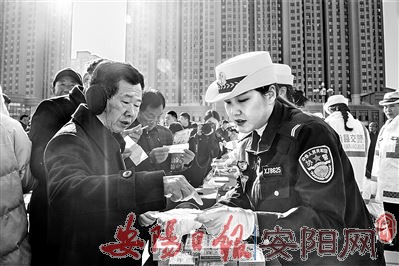 12月2日,滑县2019年“全国交通安全日”主题活动启动仪式在大云寺广场举行,活动主题为“守规则除隐患,安全文明出行”。活动现场设立咨询台6处,摆放交通事故宣传展板10块,发放交通安全宣传资料5000余份。图为民警解答群众提出的问题。(程 景 摄)