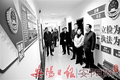 →12月6日下午,安阳县人民检察院举办“向人民报告”检察开放日活动,邀请部分人大代表、政协委员和群众代表走进该院,实地参观了12309检察服务中心、案件管理中心、人大代表联络站、政协委员之家、群众来信处理中心、远程视频庭审、社区矫正远程监督平台等场所,全方位了解检察职能,并对检察机关和检察工作提出意见和建议。