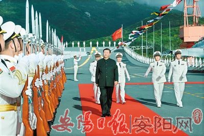 随后,习近平登上山东舰,检阅仪仗队。习近平察看有关装备,了解舰载机飞行员工作生活情况。习近平前往驾驶室,同官兵亲切交流,在航泊日志上郑重签名。