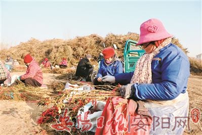 12月12日,在内黄县石盘屯乡一处空地上,村民们聚集在阳光下,一边聊天一边摘辣椒。“地里没活儿了,闲了就来摘辣椒,一天能收入几十元,还能在一起说说话。”正在摘辣椒的一名王姓村民说。(本报记者 任贵伟 摄)