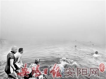 大雪节气,当天的室外最低温度降至零下2℃,古城安阳迎来了入冬以来的第一场大雾。正值周六,大雾笼罩下的城市比往日苏醒得晚,清晨时分,到处是一片寂静。然而,在城北方向的洹河岸边,却热闹非凡,一群老年冬泳爱好者摩拳擦掌,向刺骨的河水发起挑战。