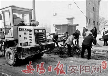 为切实改善农村人居环境,进一步提升群众幸福指数,韩陵镇全面扎实开展农村人居环境整治工作,在全镇上下掀起整治农村人居环境新高潮。图为12月19日,镇区群众在硬化路面。(本报记者 刘安娜 摄)